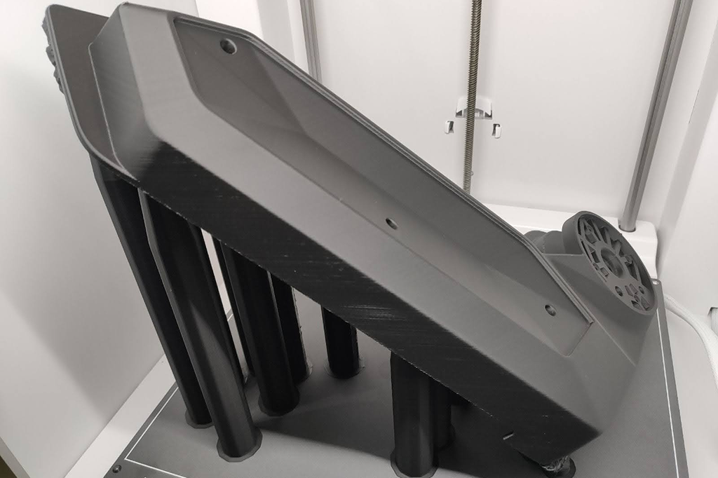 알베르토는 프로토타입을 인쇄할 때 PLA, PVA, 그리고 유연한 TPU 소재를 사용합니다. 버스 좌석 브래킷처럼 차량에 사용되는 부품처럼 고온에 노출되는 최종 사용 부품의 경우, 내구성과 내열성을 보장하기 위해 PET CF 소재를 사용합니다.